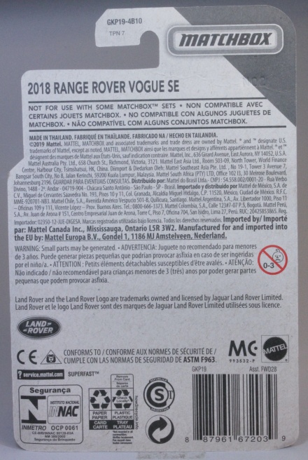 Model Name on the Pkg: 2018 Range Rover Vogue SE